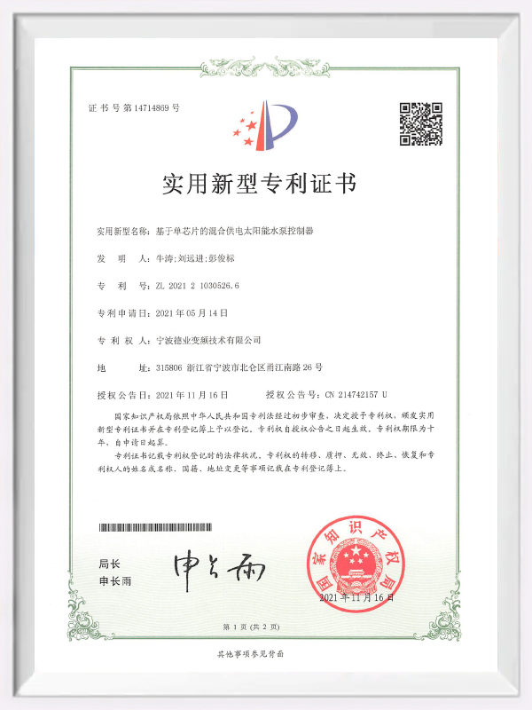 Includes protection of over-voltage, under-voltage, over-current, phase loss, water shortage,short circuit, high temperature...