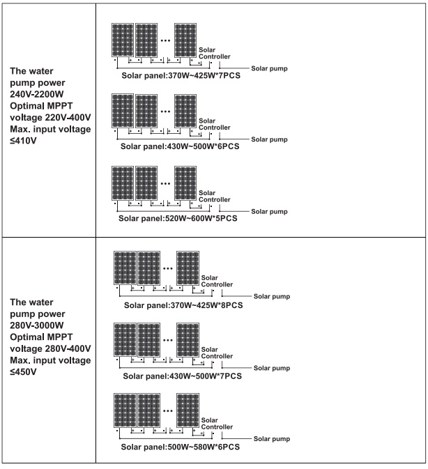 Before connecting the control box, please make sure to measure the open circuit voltage of the solar panel with professional instruments, or use the knowledge of series-parallel connection to calculate the open circuit voltage of the solar panel according to the actual solar panel parameters. The open circuit voltage of the solar panel connection group must be less than the maximum input voltage of the control box, otherwise, it will cause irreversible damage to the product.